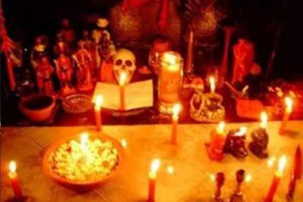 Somos um Templo de Feitiçaria, onde trabalhamos com Rituais de Quimbanda, Magia Negra, Missa Negra, Ritual do Sexo, Pentagrama Invertido, Vudu e outros. Esses são o Ponto Forte do nosso Templo e das nossas Entidades. Todos os nossos Trabalhos de Magia são feitos na Mata todas as noites.